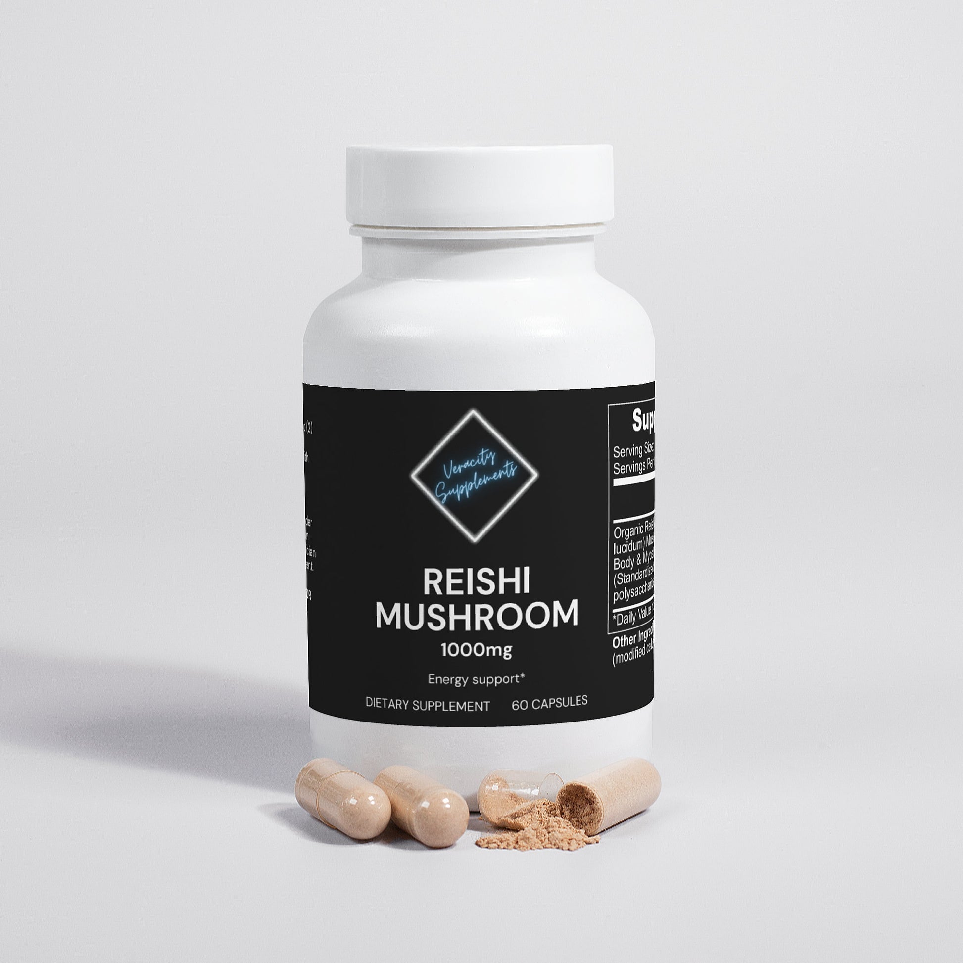 Ingredients: Organic Reishi (Ganoderma lucid) Mushroom Fruiting Body & Mycelium Powder (Standardized to 40% polysaccharides [400mg]), vegan capsule (modified cellulose, water), silica.